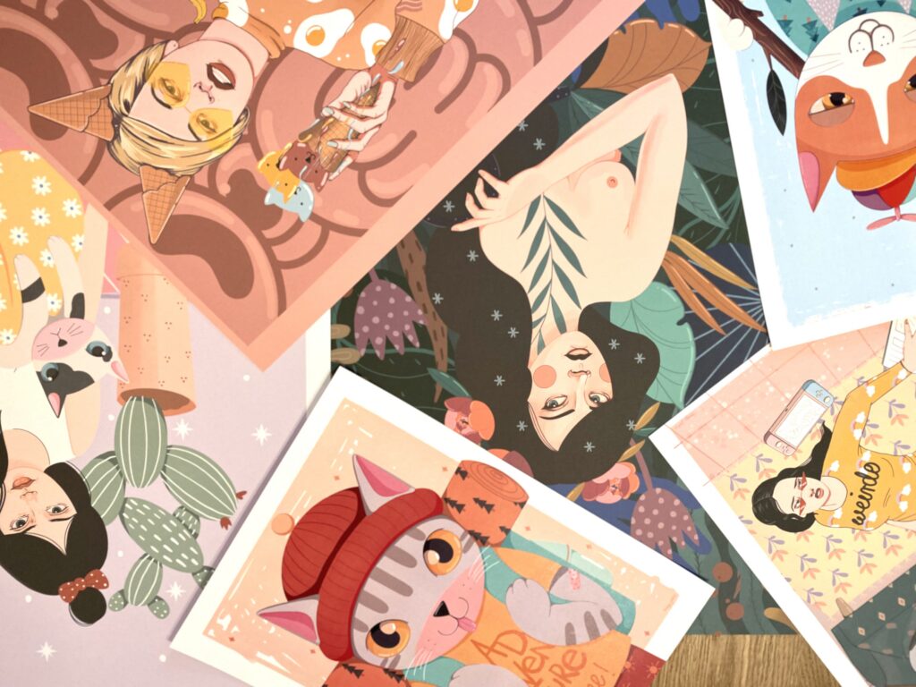 Poznaj moje autorskie ilustracje nasycone ciepłem i radością. To ciche, wizualne opowieści o bliskości i dobrych emocjach, które zostają na dłużej. Moje prace powstają z uważności i potrzeby dawania uśmiechu — dlatego świetnie nadają się na prezenty ślubne i urodzinowe — takie z kategorii: radość gwarantowana.